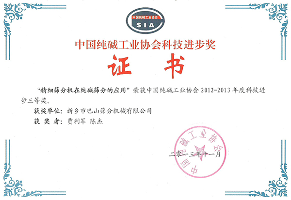 純堿行業(yè)進(jìn)步三等獎(jiǎng)