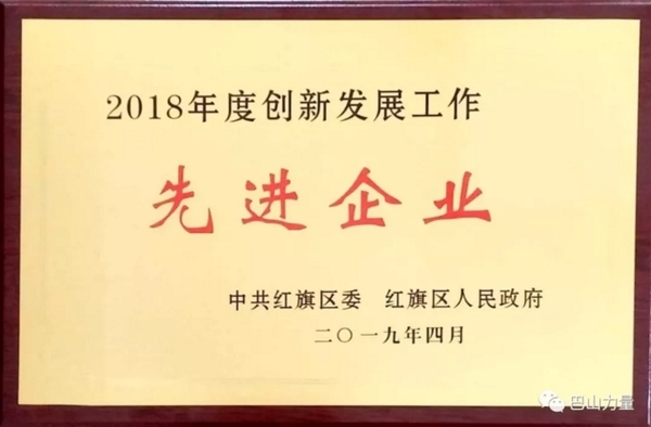 2019年4月22日,在紅旗區(qū)開展的推動(dòng)經(jīng)濟(jì)高質(zhì)量發(fā)展工作大會(huì)上,巴山公司獲得“2018年度創(chuàng)新發(fā)展工作**企業(yè)”榮譽(yù)稱號(hào),并獲得科技政策專項(xiàng)獎(jiǎng)勵(lì)獎(jiǎng)金。這是繼公司通過(guò)高新技術(shù)企業(yè)認(rèn)定、新鄉(xiāng)市工程技術(shù)中心認(rèn)定的又一榮譽(yù)。